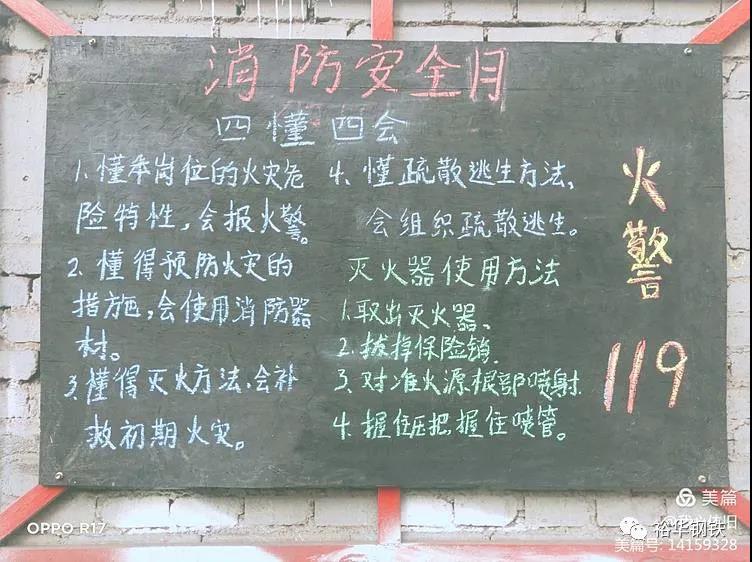 廠區現場利用條幅進行宣傳,并時刻關注消防、生命至上,煉鐵東區全體職工堅決打好安全消防月攻堅戰。